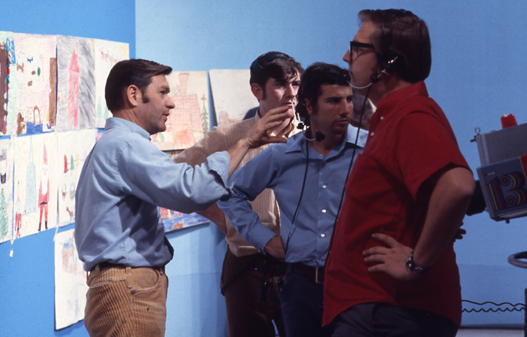 Bob directs a holiday-theme commercial in WTVT's Studio B.