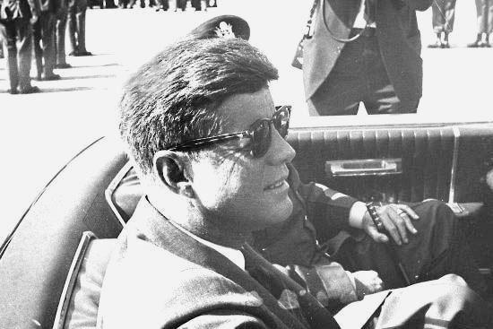 WTVT's Tim Moran can be seen at left behind JFK's shoulder.